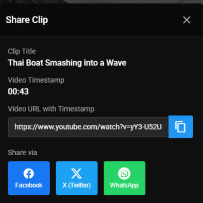 Share your saved moments via social media or direct link-recipients jump right to the exact second you marked